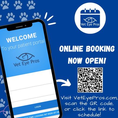 Vet Eye Pros offers fast and convenient online booking. Click here or follow this link